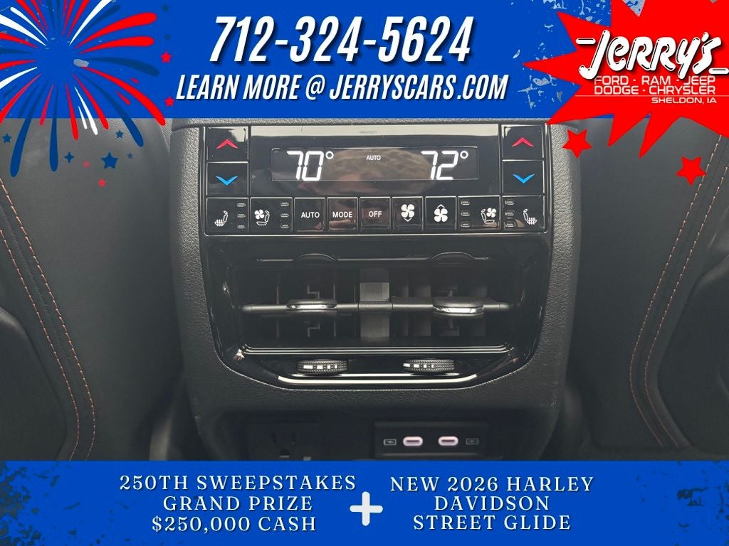 2026 Jeep Grand Cherokee L 4D Sport Utility Bright White Clearcoat 4WD 2.0L I4 PDI Turbocharged DOHC 16V LEV3-SULEV30 324hp Summit 8-Speed Automatic ABS brakes, Active Noise Control System, Adaptive suspension, Advanced Protech Group IV, AM/FM radio: SiriusXM with 360L, Anti-whiplash front head restraints, Apple CarPlay, AppLink/Apple CarPlay and Android Auto, Auto High-beam Headlights, Auto-dimming door mirrors, Auto-dimming Rear-View mirror, Auto-leveling suspension, Bumpers: body-color, Delay-off headlights, Dual front impact airbags, Dual front side impact airbags, Four wheel independent suspension, Front anti-roll bar, Front Bucket Seats, Front dual zone A/C, Front fog lights, Front reading lights, Fully automatic headlights, Garage door transmitter, Genuine wood dashboard insert, Genuine wood door panel insert, Heads-Up Display, Heated door mirrors, Heated Exterior Mirrors, Heated front seats, Heated rear seats, Heated steering wheel, Interior Rear Facing Camera, Knee airbag, Low tire pressure warning, Manual Folding Exterior Mirrors, Navigation System, Night Vision/Pedestrian-Animal Detection, Normal Duty Suspension, Occupant sensing airbag, Overhead airbag, Palermo Leather Seats, Passenger vanity mirror, Power door mirrors, Power Liftgate, Power moonroof, Quick Order Package 2CU, Rain sensing wipers, Rear air conditioning, Rear anti-roll bar, Rear dual zone A/C, Rear window defroster, Rear window wiper, Reclining 3rd row seat, Remote keyless entry, Speed-Sensitive Wipers, Split folding rear seat, Spoiler, Steering wheel memory, Tachometer, Telescoping steering wheel, Turn signal indicator mirrors, Two Tone Paint Group, Variably intermittent wipers, Ventilated front seats, Ventilated rear seats, Windshield Wiper De-Icer.