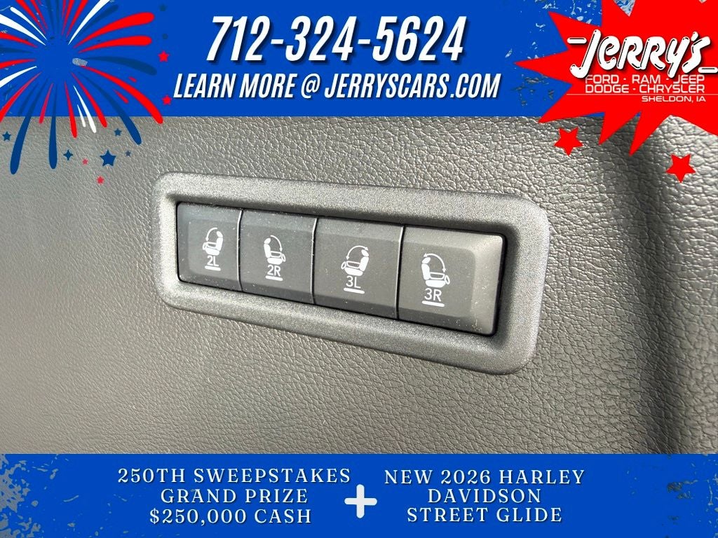 2026 Jeep Grand Wagoneer L 4D Sport Utility High Gloss Black 4WD 3.0L I6 Limited Reserve 8-Speed Automatic 118 MPH Maximum Speed Calibration, 19 Speaker McIntosh Audio System, 2nd Row Manual Window Shades, 3 Panel Sunroof, 3rd row seats: bench, 4-Wheel Disc Brakes, ABS brakes, AM/FM radio: SiriusXM with 360L, Anti-whiplash front head restraints, Apple CarPlay/Android Auto, Augmented HUD, Auto Adjust in Reverse Exterior Mirrors, Auto-dimming door mirrors, Auto-Dimming Exterior Driver Mirror, Auto-dimming Rear-View mirror, Auto-leveling suspension, Automatic temperature control, Black Appearance Package, Black Exterior Accents, Brake assist, Bumpers: body-color, Cluster 12 TFT Color Display, Delay-off headlights, Driver's Seat Mounted Armrest, Dual front impact airbags, Dual front side impact airbags, Electronic Stability Control, Exterior Parking Camera Rear, Front anti-roll bar, Front Bucket Seats, Front dual zone A/C, Front fog lights, Fully automatic headlights, Heated door mirrors, Heated front seats, Heated rear seats, Heated steering wheel, Illuminated entry, Instrument Panel, Interior Rear Facing Camera, Knee airbag, Leather Trimmed Bucket Seats, Limited Reserve Package, Low tire pressure warning, Luxury Front and Rear Floor Mats, Navigation System, Occupant sensing airbag, Outside temperature display, Overhead airbag, P and P Park and Unpark Assist with Stop System, Pirelli Brand Tires, Power Deployable Running Boards, Power door mirrors, Power Liftgate, Power passenger seat, Quadra-Lift Air Suspension, Quick Order Package 29D Reserve, Radio data system, Rain sensing wipers, Rear air conditioning, Rear anti-roll bar, Rear seat center armrest, Rear window wiper, Reclining 3rd row seat, Reversible Carpet/Vinyl Cargo Mat, Semi Active Damping, Side Distance Warning, Smartphone as a Key Prep, Speed-Sensitive Wipers, Split folding rear seat, Surround View Camera System, Telescoping steering wheel, Titanium Daylight Opening Upper, Titanium Upper Grille Applique, Ventilated front seats, Wheels: 22 x 9 Painted Gloss Black.