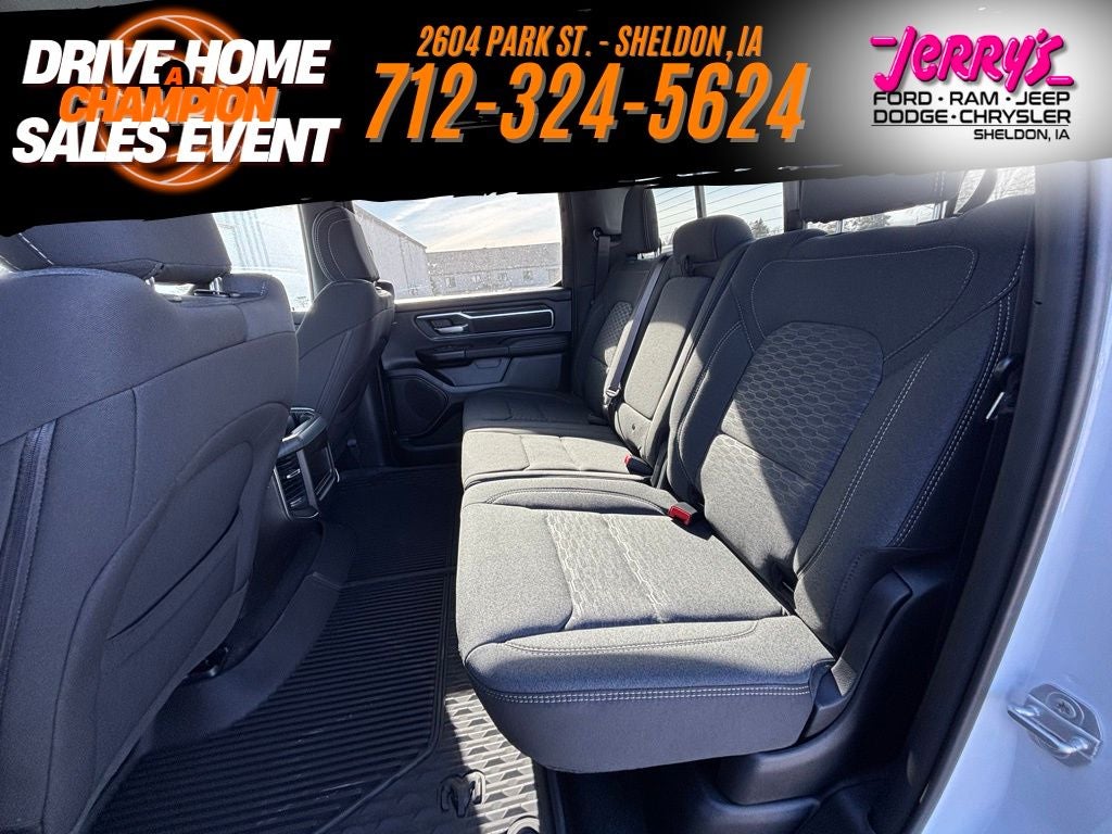 2026 Ram 1500 4D Crew Cab Bright White Clearcoat 4WD HEMI 5.7L V8 Multi Displacement VVT eTorque Big Horn/Lone Star 8-Speed Automatic 115V Auxiliary Power Outlet, 2nd Row in Floor Storage Bins, 3 Rear Seat Head Restraints, 4 Way Front Headrests, 4-Wheel Disc Brakes, 400W Inverter, 6 Speakers, ABS brakes, Auto Power-Folding Mirrors, Auto-Dimming Exterior Driver Mirror, Auto-Dimming Rear-View Mirror, Big Horn Level 1 Equipment Group, Black Exterior Mirrors, Black Premium Power Mirrors, Body Color Fender Flares, Brake assist, Bucket Seats, Center Console Parts Module, Convex Wide-Angle Exterior Mirror Insert, Deluxe Cloth Bucket Seats, Dual front impact airbags, Dual front side impact airbags, Electronic Stability Control, Exterior Mirrors Courtesy Lamps, Exterior Mirrors with Heating Element, Exterior Mirrors with Supplemental Signals, Front anti-roll bar, Front Seat Back Map Pockets, Front wheel independent suspension, Full Length Floor Console, Glove Box Lamp, Heated Front Seats, Heated Steering Wheel, Leather Wrapped Steering Wheel, Low tire pressure warning, Manual Adjust 4-Way Front Passenger Seat, Occupant sensing airbag, Overhead airbag, Power 2-Way Driver Lumbar Adjust, Power Adjust 8-Way Driver Seat, Power Adjustable Pedals, Quick Order Package 27Z Big Horn, Rear 60/40 Folding Seat, Rear anti-roll bar, Rear Center Armrest, Rear Dome with on/Off Switch Lamp, Rear Power Sliding Window, Rear Window Defroster, SiriusXM Radio Service, SiriusXM Satellite Radio, Steering Wheel Mounted Audio Controls, Sun Visors with Illuminated Vanity Mirrors, Universal Garage Door Opener.