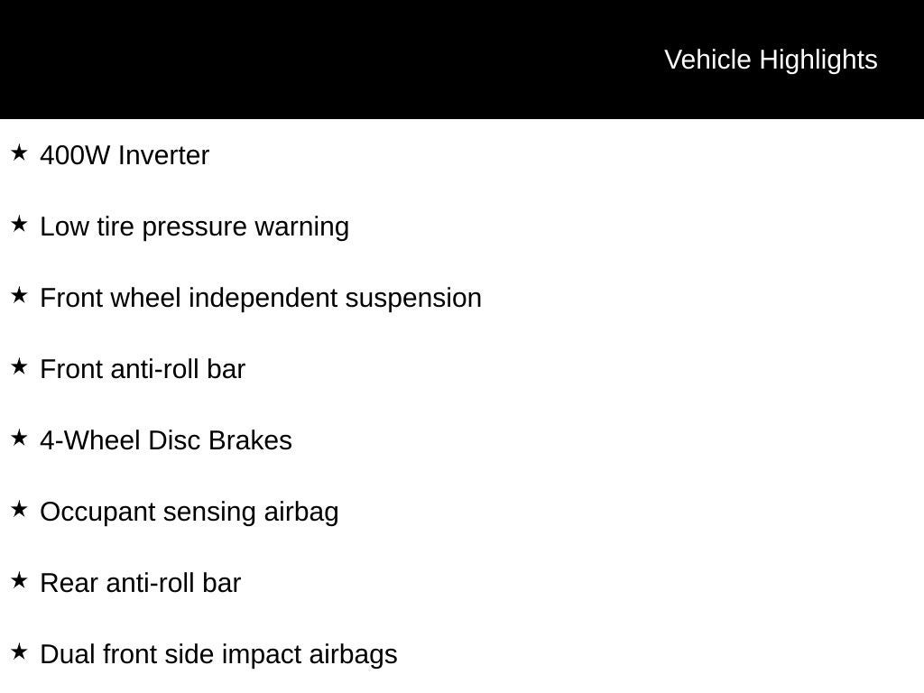 - Regenerative 4-Wheel Disc Brakes w/4-Wheel ABS, Front Vented Discs, Brake Assist, Hill Hold Control and Electric Parking Brake