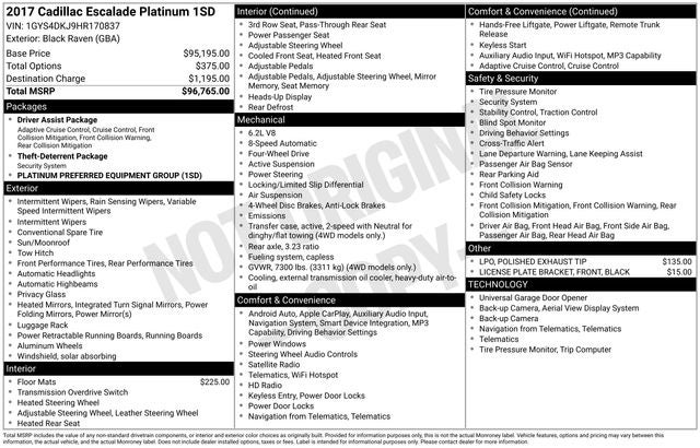 Local Trade! Recent Arrival! TOW PACKAGE, BACK-UP CAMERA, HEATED AND COOLED SEATS, REMOTE START, Navigation, Adaptive Cruise Control, Escalade Platinum Edition, 4D Sport Utility, 6.2L Variable Valve Timing V8 SIDI, 8-Speed Automatic, 4WD, Black Raven, Tuscan Brown Leather, 2-Position Memory For Driver's Seat Adjuster, Adaptive Full-Speed Range Cruise Control, Automatic Safety Belt Tightening, Bose Centerpoint Surround Sound System, Cooled Console w/Covered Storage, Driver Assist Package, Dual DVD Screens, Electronic Powered Parking Brake, Forward Collision Alert, Front & Rear Automatic Braking, HD Radio, Illuminated Door Handles, Inclination Sensor, IntelliBeam Headlamps, Lane Change Alert, Lane Keep Assist w/Lane Departure Warning, Leather Wrapped IP/Console/Door, Microfiber Sueded Headliner, NavTraffic, Platinum Package, Platinum Sill Plates, Power Tilt-Sliding Sunroof w/Express-Open/Close, Power-Retractable Assist Steps, Preferred Equipment Group 1SD, Premium Floor Mats, Radio: Cadillac CUE Info/Media Ctrl Sys w/Embd Nav, Rear Camera Mirror, Rear Camera Washer, Rear Cross-Traffic Alert, Rear Seat Entertainment System, Reconfigurable 4-Color Head-Up Display, Second Row Bucket Seats, Side Blind Zone Alert, SiriusXM Satellite Radio, Theft-Deterrent Alarm System, Theft-Deterrent Package, Unique Exotic Wood, Unique Grille Design, VAC Power 17 Disc Brakes, Vehicle Interior Movement Sensor.