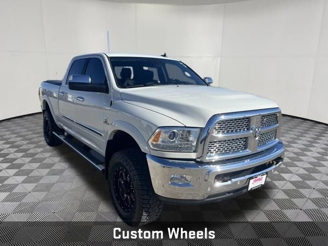 Clean Auto Check! **LOCAL TRADE**, **Recent Arrival**, Custom Wheels, 2500 Laramie, 4D Crew Cab, Cummins 6.7L I6 Turbodiesel, 6-Speed Automatic, 4WD, Pearl White, Black Leather, 1 Year Trial (Registration Required), 10 Speakers, 5-Year SiriusXM Traffic Service, 5-Year SiriusXM Travel Link Service, 8.4 Touchscreen Display, Air Conditioning ATC w/Dual Zone Control, Auto High Beam Headlamp Control, Cold Weather Group, Convenience Group, Dual front side impact airbags, Engine Block Heater, For Details Visit DriveUconnect.com, Front Armrest w/Cupholders, Front dual zone A/C, Fully automatic headlights, Garage door transmitter, GPS Antenna Input, GPS Navigation, HD Radio, Heated Front Seats, Heated steering wheel, Integrated Voice Command w/Bluetooth®, Leather Trim 40/20/40 Bench Seat, Media Hub (2 USB, AUX), Memory seat, Overhead airbag, ParkView Rear Back-Up Camera, Quick Order Package 2FH Laramie, Radio: Uconnect 3C Nav w/8.4 Display, Rain Sensitive Windshield Wipers, SiriusXM Satellite Radio, SiriusXM Traffic, SiriusXM Travel Link, Tachometer, Uconnect Access, Ventilated front seats, Winter Front Grille Cover. Odometer is 34344 miles below market average!