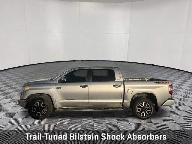 Recent Arrival! **Recent Arrival**, Tundra Limited CrewMax, 4D CrewMax, i-Force 5.7L V8 Flex Fuel DOHC 32V LEV, 6-Speed Automatic Electronic with Overdrive, 4WD, Silver Sky Metallic, Graphite Leather, Blind Spot Monitor w/Rear Cross Traffic Alert, Color-Keyed Rear Bumper, Front & Rear Parking Assist Sonar, Glass Breakage Sensors (GBS), Heated door mirrors, Heated Front Bucket Seats, Heated front seats, Illuminated Entry System, Leather Seat Trim w/TRD Off-Road Package, Leather steering wheel, Limited Premium Package, Navigation System, Power Tilt & Slide Moonroof w/Sliding Sunshade, Power Windows w/Front Auto Up/Down, Trail-Tuned Bilstein Shock Absorbers, TRD Off Road Package, TRD Off-Road Graphics, Wheels: 18 x 8J Split 5-Spoke TRD Off-Road Alloy. Odometer is 7656 miles below market average!