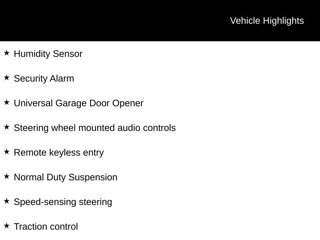 - Tailgate/Rear Door Lock Included w/Power Door Locks