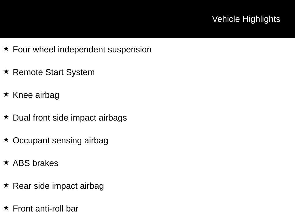 - 4-Wheel Disc Brakes w/4-Wheel ABS, Front Vented Discs, Brake Assist, Hill Hold Control and Electric Parking Brake