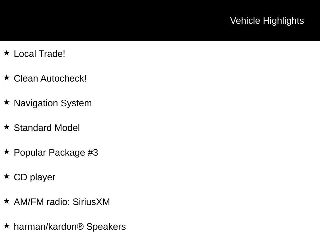 One Owner. Local Trade!, Clean Autocheck!, 3rd row seats: bench, 4-Wheel Disc Brakes, ABS brakes, Aero Crossbar Set, All-Weather Floor Liners, AM/FM radio: SiriusXM, Auto High-beam Headlights, Auto-Dimming Exterior Mirror w/Approach Light, Auto-dimming Rear-View mirror, Bumpers: body-color, Cargo Tray, CD player, Compass, Delay-off headlights, Dual front impact airbags, Dual front side impact airbags, Front anti-roll bar, Front Bucket Seats, Front dual zone A/C, Front fog lights, Front reading lights, Fully automatic headlights, harman/kardon® Speakers, Heated & Ventilated Front Bucket Seats, Heated door mirrors, Heated rear seats, Heated steering wheel, Illuminated entry, Knee airbag, Low tire pressure warning, Navigation System, Occupant sensing airbag, Overhead airbag, Overhead console, Passenger door bin, Perforated Leather-Trimmed Upholstery, Popular Package #3, Power door mirrors, Power driver seat, Power Liftgate, Power moonroof, Power windows, Rain sensing wipers, Rear anti-roll bar, Rear Bumper Cover, Rear Seatback Protector, Rear window defroster, Rear window wiper, Reclining 3rd row seat, Remote keyless entry, Splash Guards, Split folding rear seat, Spoiler, Standard Model, Steering wheel mounted audio controls, Telescoping steering wheel, Turn signal indicator mirrors, Variably intermittent wipers, Wheels: 20 Dk Gray Aluminum Alloy w/Machine Finish. 20/26 City/Highway MPG