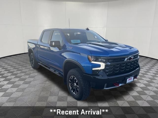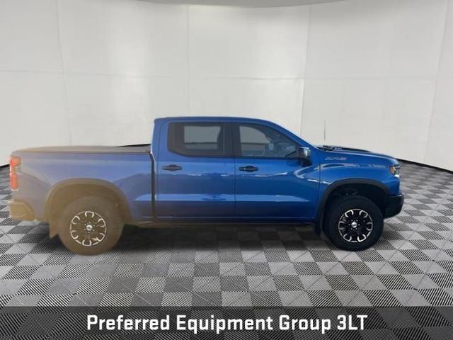 One Owner! Clean Auto Check! **LOCAL TRADE**, **Recent Arrival**, Silverado 1500 ZR2, 4D Crew Cab, EcoTec3 6.2L V8, 10-Speed Automatic, 4WD, Glacier Blue Metallic, Jet Black/Graystone Leather, 10-Way Power Driver Seat w/Lumbar, 10-Way Power Passenger Seat Adjuster w/Lumbar, 12.3 Multicolor Reconfigurable Digital Display, 120-Volt Bed Mounted Power Outlet, 120-Volt Instrument Panel Power Outlet, 15 Diagonal Multicolor Head-Up Display, 170 Amp Alternator, 2 USB Data Ports, 2nd Row Heated Outboard Seats, Adaptive Cruise Control, All-Weather Floor Liner (LPO), AM/FM radio: SiriusXM with 360L, Auto-dimming door mirrors, Auto-Dimming Inside Rear-View Mirror, Auto-Locking Rear Differential, Bed View Camera, Bluetooth® For Phone, Chevrolet Connected Access Capable, Chevytec Spray-On Black Bedliner, Color-Keyed Carpeting Floor Covering, Compass, Deep-Tinted Glass, Driver Memory, Dual Exhaust, Dual Rear USB Ports (Charge Only), Electric Rear-Window Defogger, Electrical Steering Column Lock, Electronic Cruise Control, EZ Lift Power Lock & Release Tailgate, Floor Mounted Center Console, Front LED Fog Lamps, Front Rainsensing Wipers, HD Surround Vision, Heated Driver & Front Outboard Passenger Seats, Heated Steering Wheel, Heavy-Duty Air Filter, High Gloss Black Mirror Caps, Hill Descent Control, Hitch Guidance, Hitch Guidance w/Hitch View, Integrated Trailer Brake Controller, Keyless Open & Start, Leather Wrapped Steering Wheel, LED Cargo Area Lighting, Manual Tilt/Telescoping Steering Column, OnStar & Chevrolet Connected Services Capable, Outside Heated Power-Adjustable Mirrors, Performance Red Recovery Hooks, Perimeter Lighting, Power Front Passenger Windows w/Express Up/Down, Power Front Windows w/Driver Express Up/Down, Power Rear Windows w/Express Down, Power Sliding Rear Window w/Rear Defogger, Power Tilt & Telescoping Steering Column, Preferred Equipment Group 3LT, Rear Camera Mirror, Rear Cross Traffic Alert-Braking, Rear Park Assist, Rear Pedestrian Detection, Rear Wheelhouse Liners, Remote Vehicle Starter System, Safety Alert Seat, SiriusXM w/360L, Standard Tailgate, Steering Wheel Audio Controls, Technology Package, Theft Deterrent System (Unauthorized Entry), Trailer Camera Provisions, Trailer Side Blind Zone Alert, Trailering App, Trailering Package, Universal Home Remote, Up-Level Rear Seat w/Storage Package, Ventilated Driver & Front Passenger Seats, Wi-Fi Hot Spot Capable, Wireless Charging, Wireless Phone Projection, ZR2 Suspension Package.