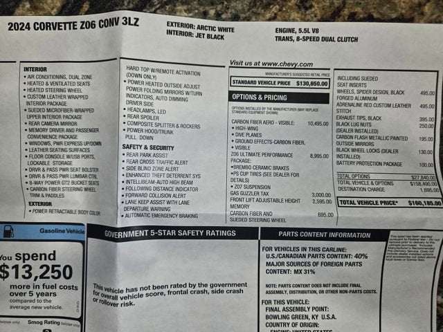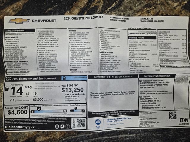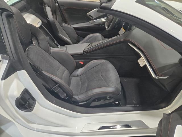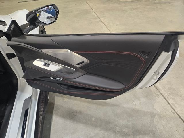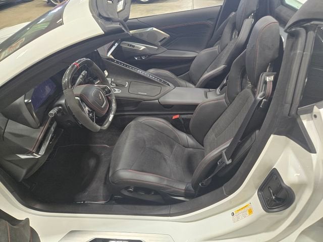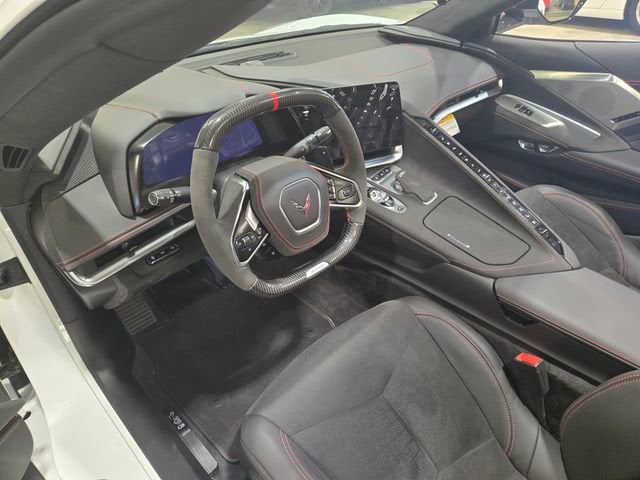 2024 Corvette Z06 Convertible. Arctic White/ Jet Black Nappa Leather w/ Suede Insert Sport Seats/ Arctic White Roof. 670 HP 5.5L Flat Plane Crankshaft V8, 8 Speed Dual Clutch Transmission, Z07 Ultimate Performance Suspension, Magnetic Selective Ride Control Suspension, 3LZ Equipment Group, Heads Up Display, P/ Heated & Ventilated Seats, Bose Performance Series 14 Speaker Audio System w/ NAV & Steering Wheel Controls, Performance Data Recorder, XM Satellite Radio, Onstar, Bluetooth®, Carbon Fiber & Suede Heated Steering Wheel, P/ Tilt & Telescope Steering, GT2 Seating, Adrenaline Red Custom Interior Stitching, Black Seatbelts, Dual Zone Air, Memory, Sueded Upper Interior Trim, Front Lift, Floor Mats, Rearview Mirror Camera, Front Park Assist Camera, Blind Zone Alert, Rear Cross Traffic Alert, P/ Retractable Hardtop, Battery Protection Package, Carbon Flash Metallic Badging, Carbon Flash Metallic Mirrors, Visible Carbon Fiber Ground Effects, Dual Mode Performance Exhaust, Black Exhaust Tips, Dark Gray Brake Calipers, Black Lug Nuts, Gloss Black Forged Spider Design Wheels. MSRP $160,185. Warranty Start Date 5/23/2024. One Owner. Local Trade. Only 925 Miles.
